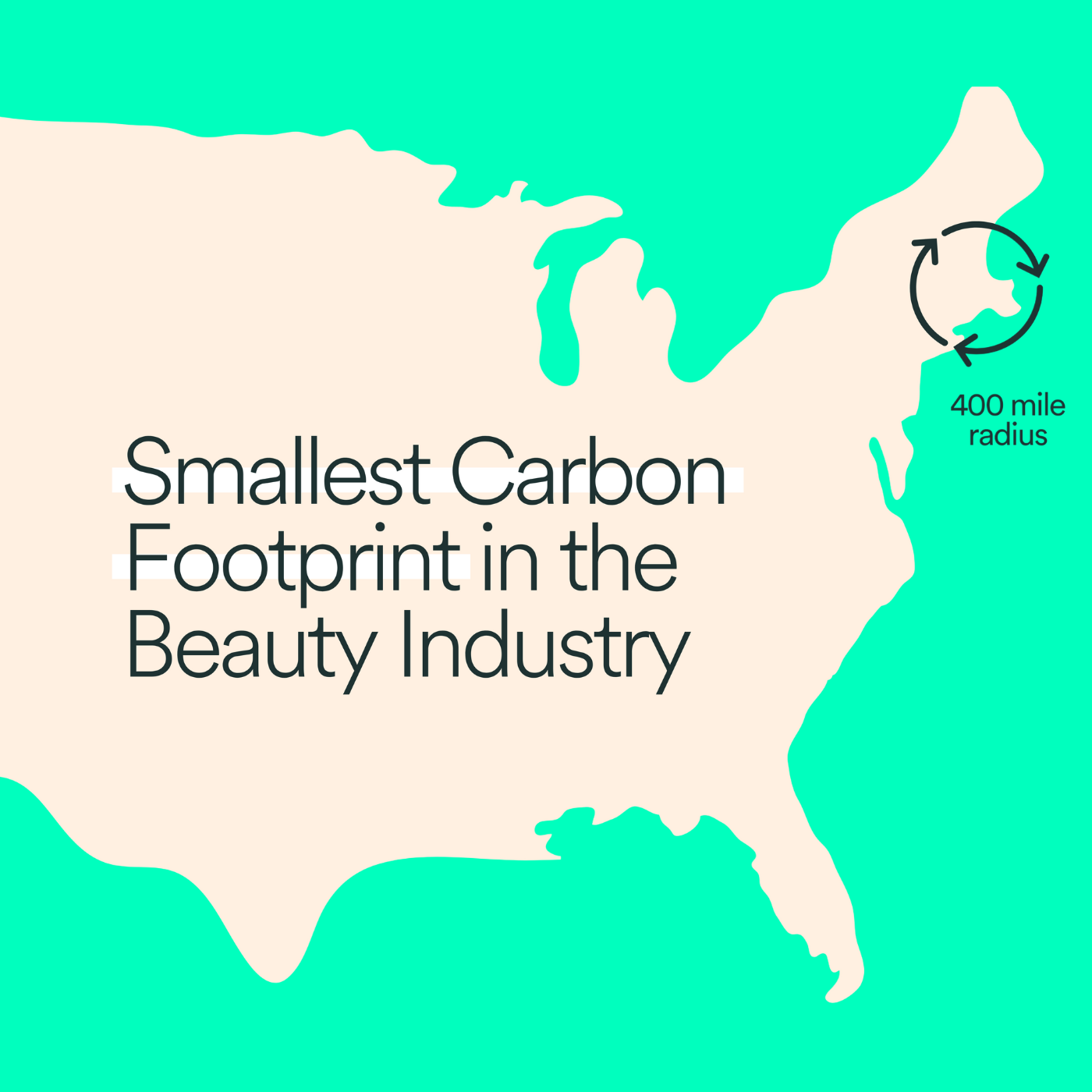 All of our manufacturing occurs within a 400-mile radius, meaning our carbon emissions from transportation alone are significantly lower than those of any other beauty brand. Compared to the industry standard, our products have a 78% smaller carbon footprint after 25 refills. The more we reuse our products, the smaller our relative carbon footprint becomes over time.